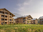 Die Wohnüberbauung „In den Gärten“ interpretiert den Charakter der ehemaligen Schrebergärten und Obsthainanlage neu und fügt sich harmonisch in das Dorfbild von Bönigen ein.